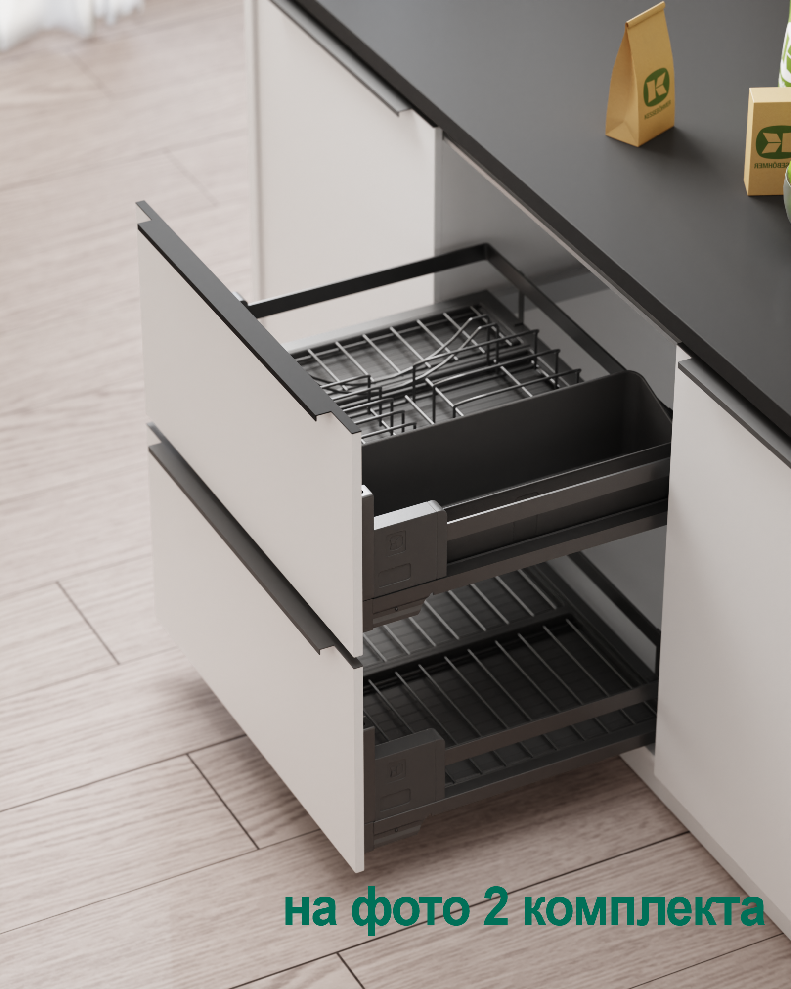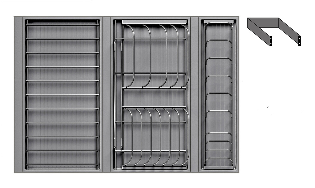 1 для посуды большой (423 x 248 мм, состоит из 1 х держатель металлический, 1 х поддон пластиковый, 2 х защелка-ограничитель)