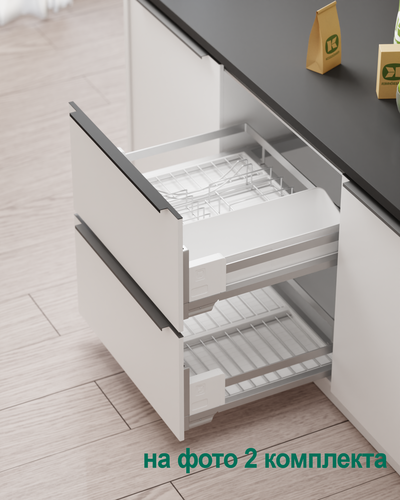 1 для посуды большой (423 x 248 мм, состоит из 1 х держатель металлический, 1 х поддон пластиковый, 2 х защелка-ограничитель)