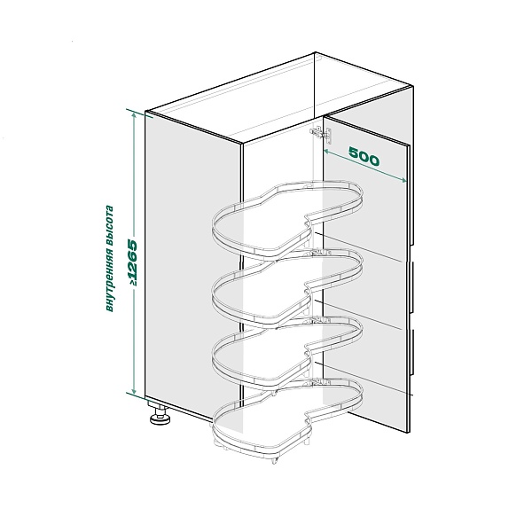 Комплект полок левый, Леманс 500 мм, Арена ПЬЮР, 2 полки + рычаги, цвет АНТРАЦИТ, цвет дна Антрацит, антислип (2603959846) - 2 шт.