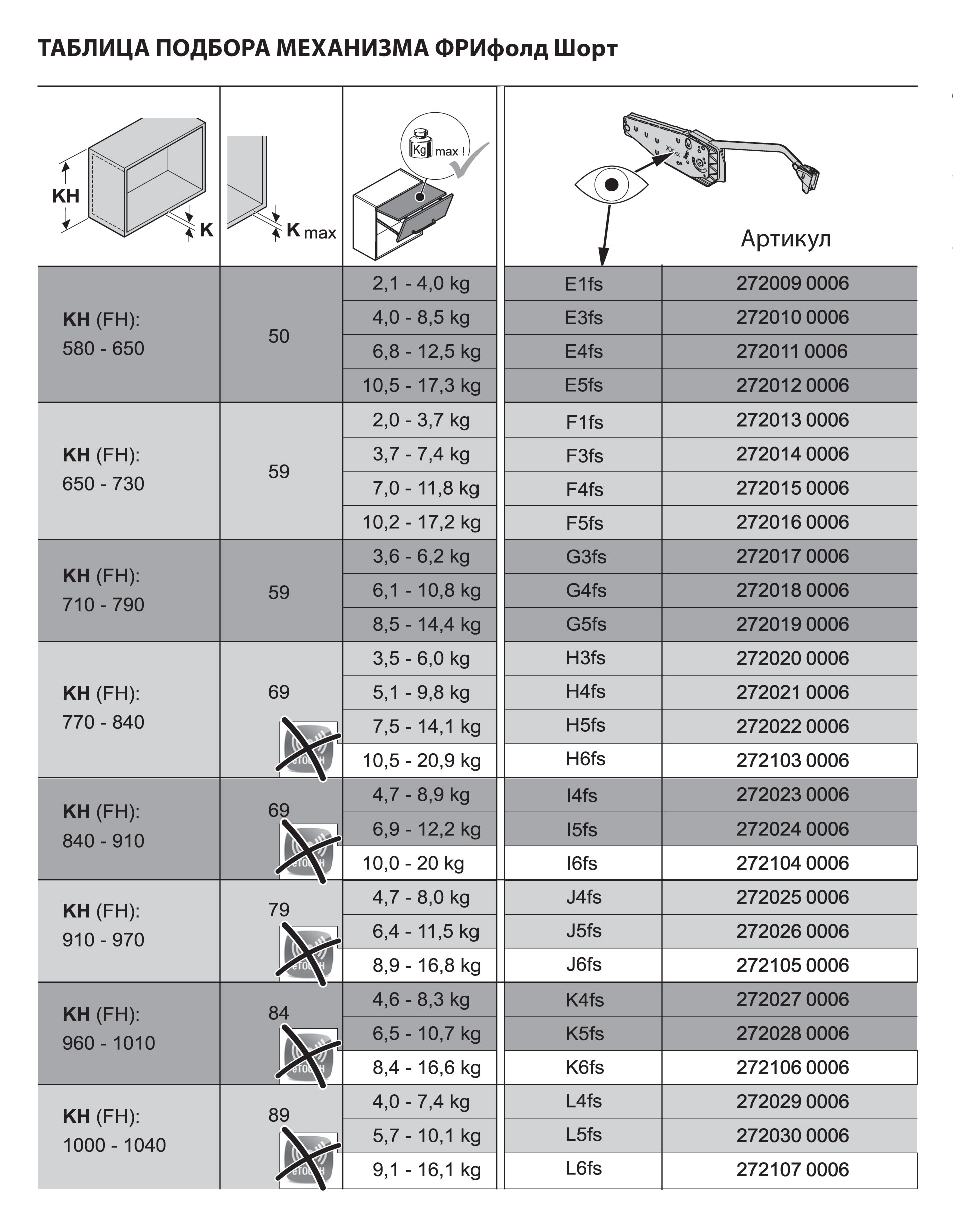 Подъемник ФриФолд Шорт K6fs H960 - 1010 мм 8,4-16,6 кг без крышек, без петель